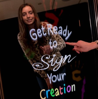 When the Signature feature is included in a workflow, guest will have the ability to draw or sign their name directly on the mirror, which will then be printed out on the final image.